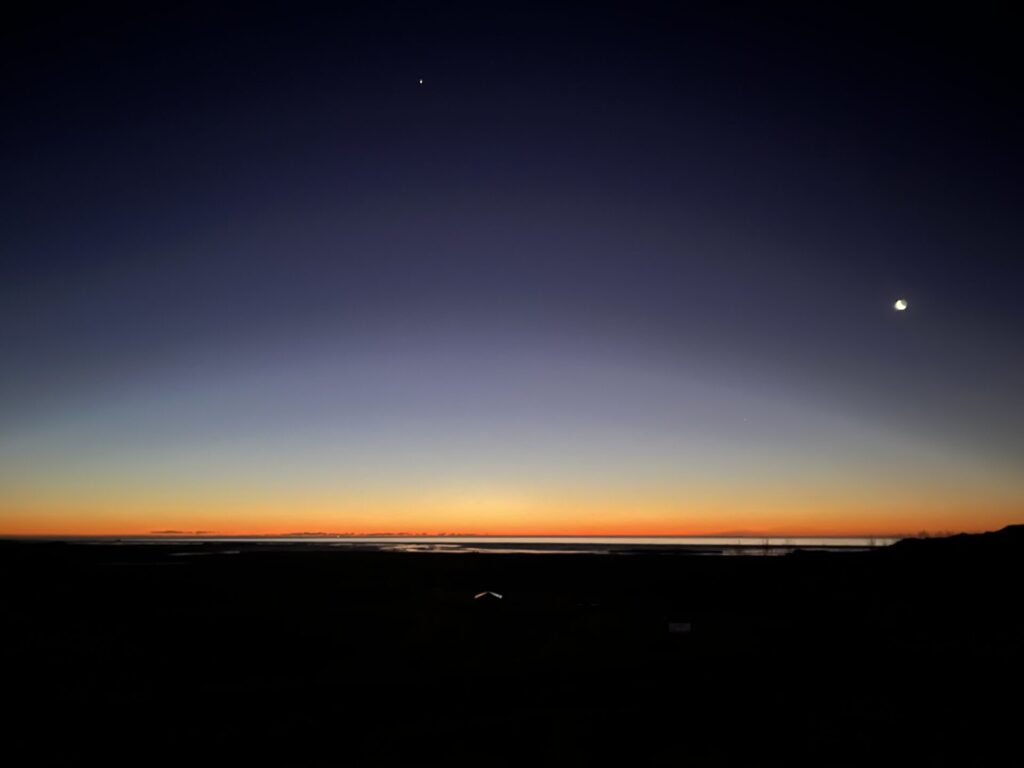 8:00頃のホテル前は、まだこの暗さですが、ただ外に出るだけでこの美しさ!↓↓