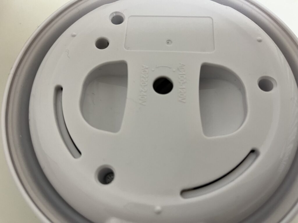ちなみに、この裏面の真ん中に見える黒い丸の部分をまわして、使用する国の電圧に合わせられるようになっています。電圧の種類は、日本と同じ100V~120Vと、海外に多い220~240Vの2つ。