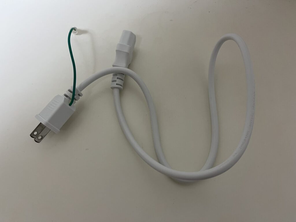 もやもやの原因は、この付属コードに付いている緑色のアース線↓
