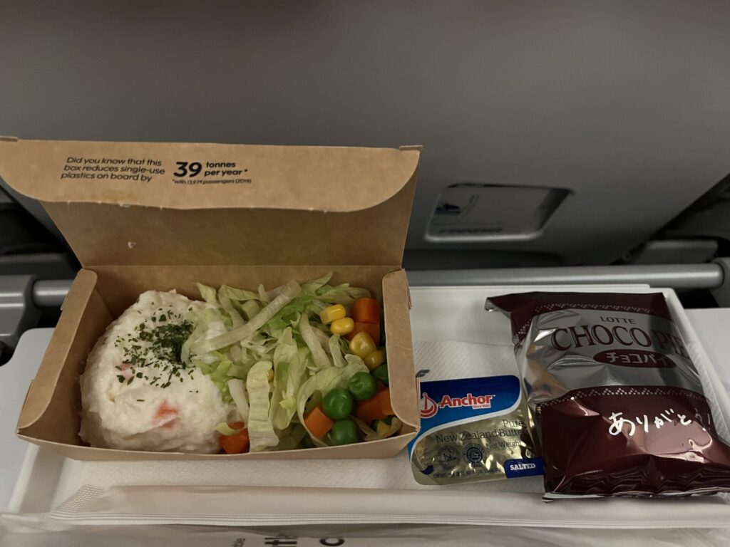 さらに、この日のフライトはとても忙しかったのか、ついているべきデザートやパンがついていなかった乗客がいたようです。もちろん、CAさんに伝えれば持ってきてもらえますので、食べたいものなら遠慮せず声をかけるのがおすすめです。また、食後に出ると思っていたお茶やコーヒーが提供されなかった点も気になりました。帰りのフライトでは提供されたので、今回だけ例外だった可能性もあります。