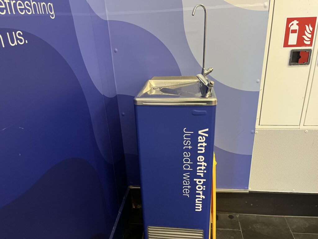 空港にこのような給水機があり、ボトルさえあれば無料で飲み水をいただくことができます↓